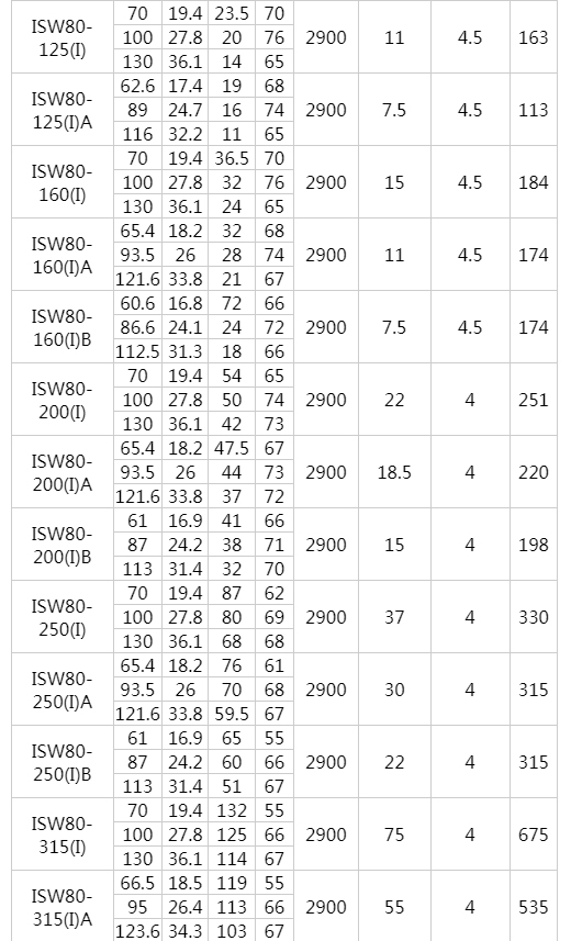 該泵采用國(guó)內(nèi)先進(jìn)水力模型優(yōu)化設(shè)計(jì)而成。同時(shí)根據(jù)使用溫度、介質(zhì)等不同在ISW型基礎(chǔ)上派生出熱水泵、高溫泵、化工泵、油泵等,是目前國(guó)家標(biāo)準(zhǔn)定型推廣產(chǎn)品。